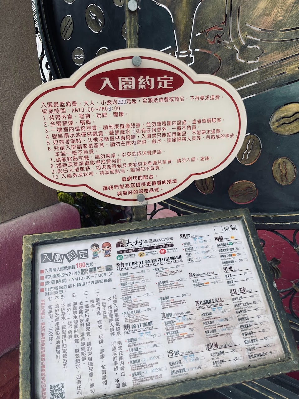 不錯的咖啡館,門票$150,大人小孩一樣,貴了點,滿多坐位,室內室外都有,今天剛好下雨,還有放雨傘供應,不錯的服務