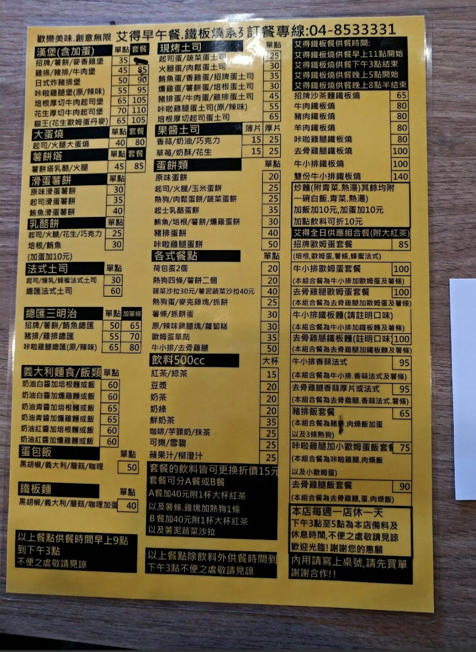 2024最新在地推薦餐廳的菜單_艾德 早午餐/鐵板燒的菜單、圖片