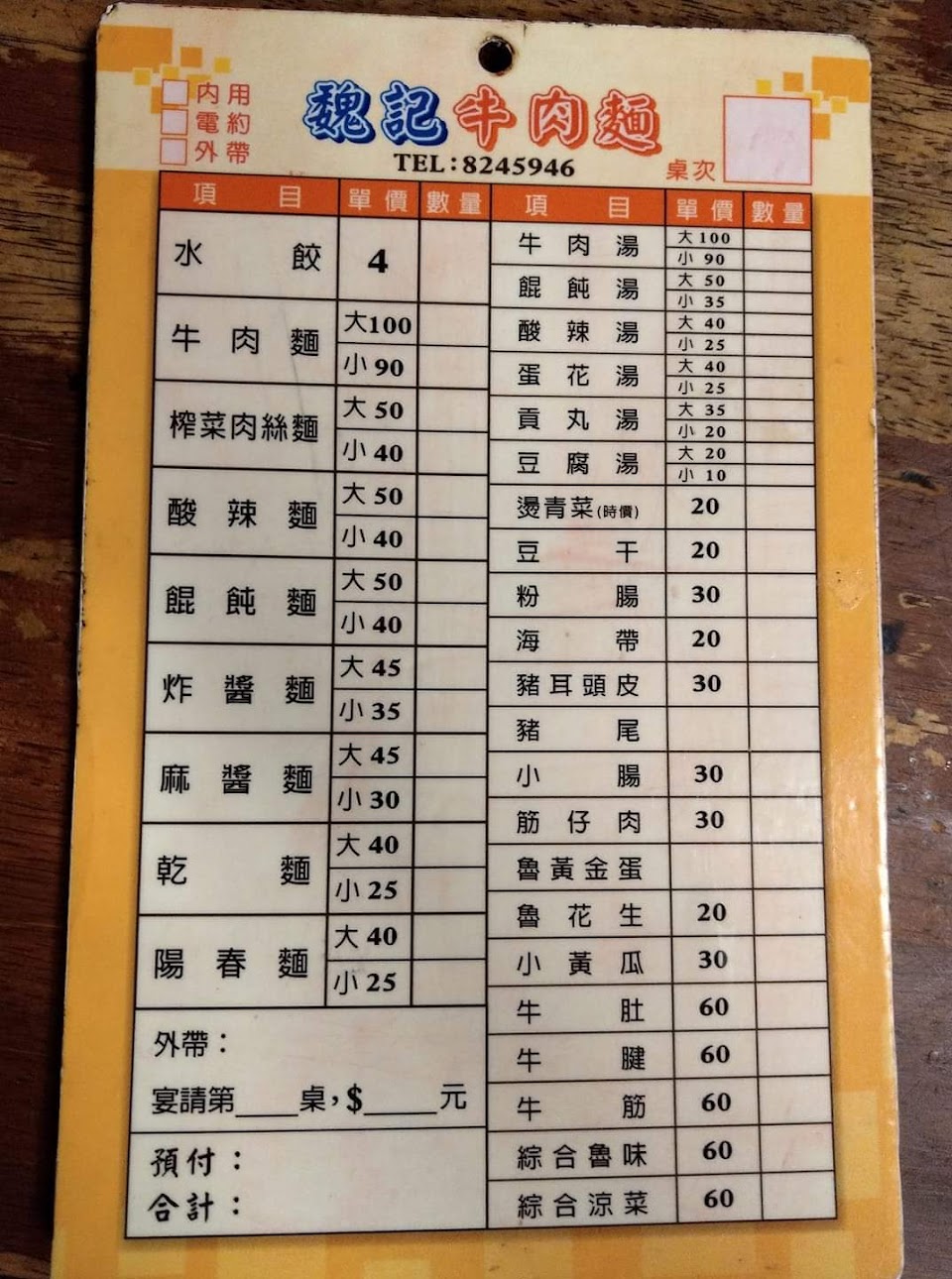 2024最新在地推薦餐廳的菜單_魏記牛肉麵的菜單、圖片