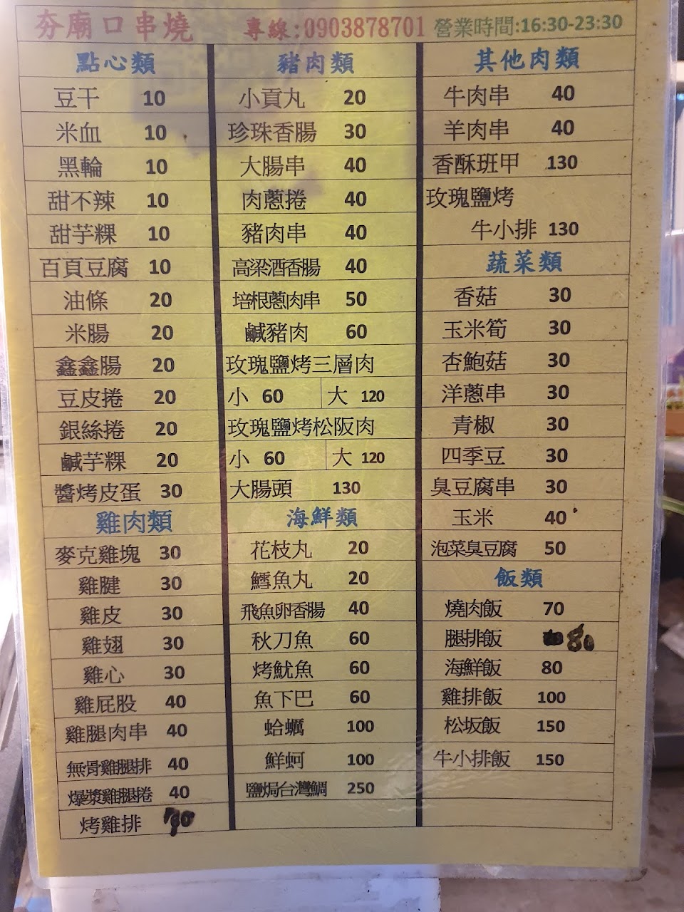 2024最新在地推薦餐廳的菜單_夯廟口串燒的菜單、圖片