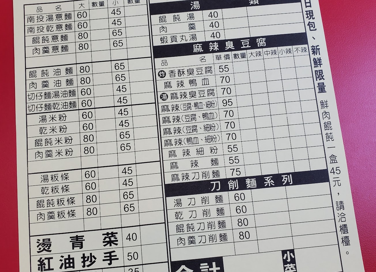 其他都不錯喔!臭豆腐酥酥,麻辣鴨血讚,南投意麵也好吃,讚