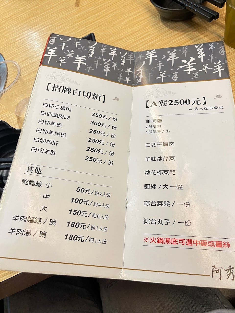 2024最新在地推薦餐廳的菜單_溪湖阿秀羊肉爐 (現場候位、現場排隊、外帶亦同)的菜單、圖片