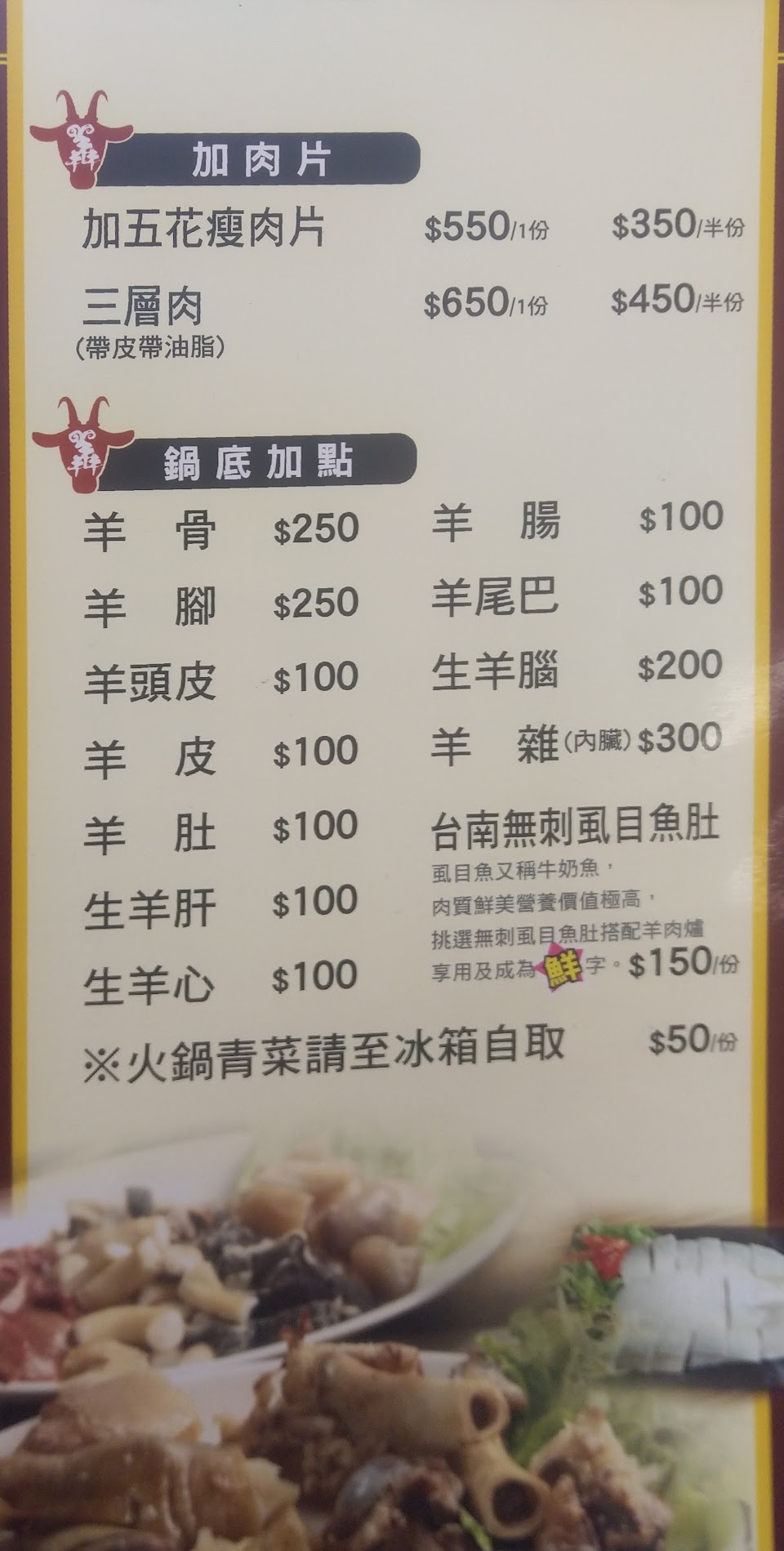 羊肉爐湯裡面帶皮的羊肉只有皮沒有肉,加點一盤肉350份量大概就是一般火鍋店肉盤的四分之一
