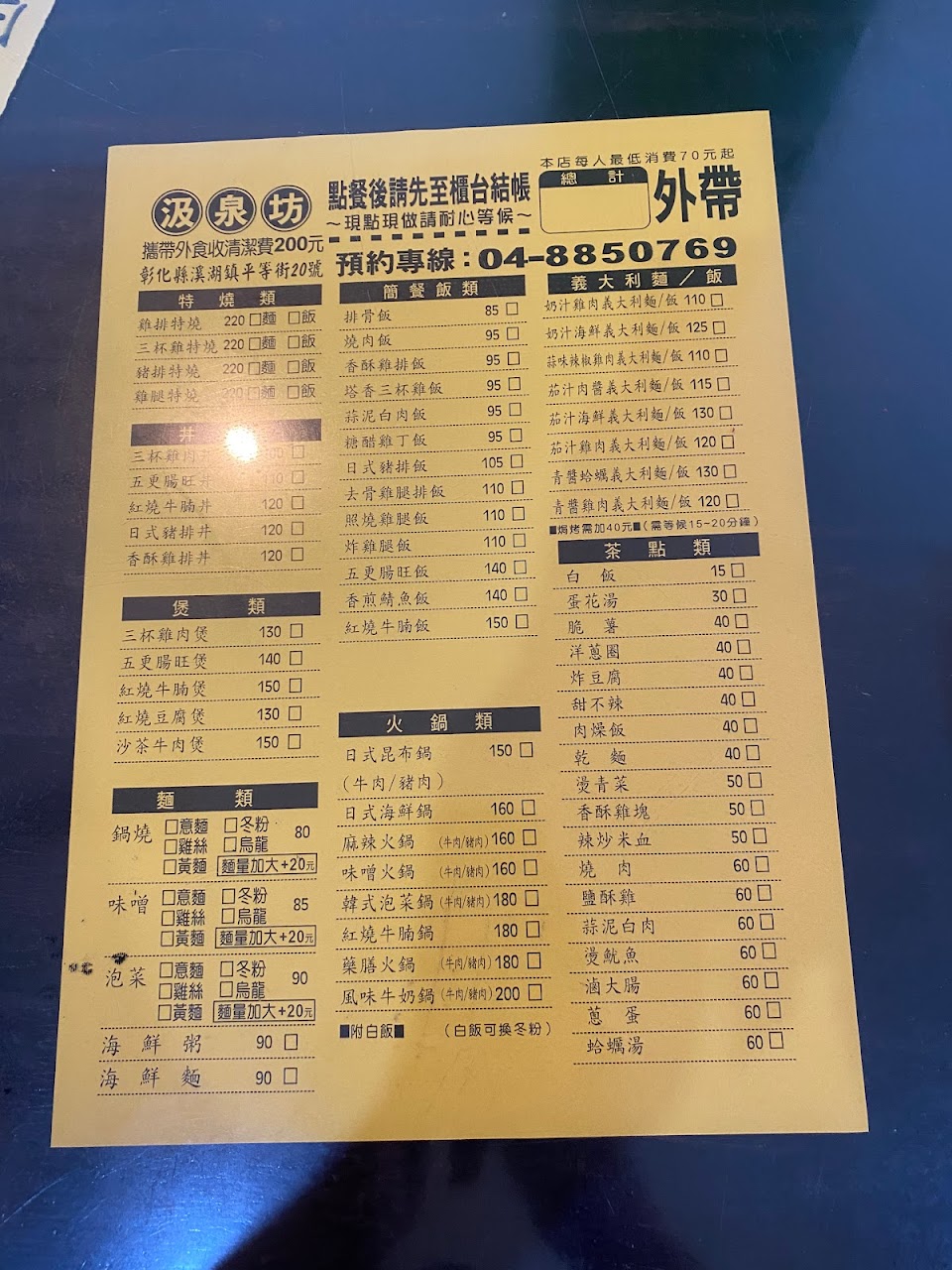 來彰化溪湖糖廠遊玩,不妨到「汲泉坊」吃美味雞排套餐。 服務 內用 餐點類型 午餐 平均每人消費金額 $1-200