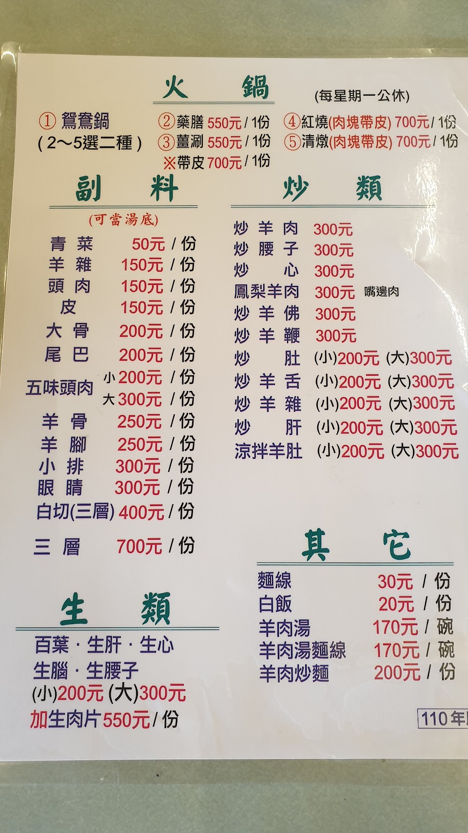 2024最新在地推薦餐廳的菜單_楊仔頭羊肉爐的菜單、圖片