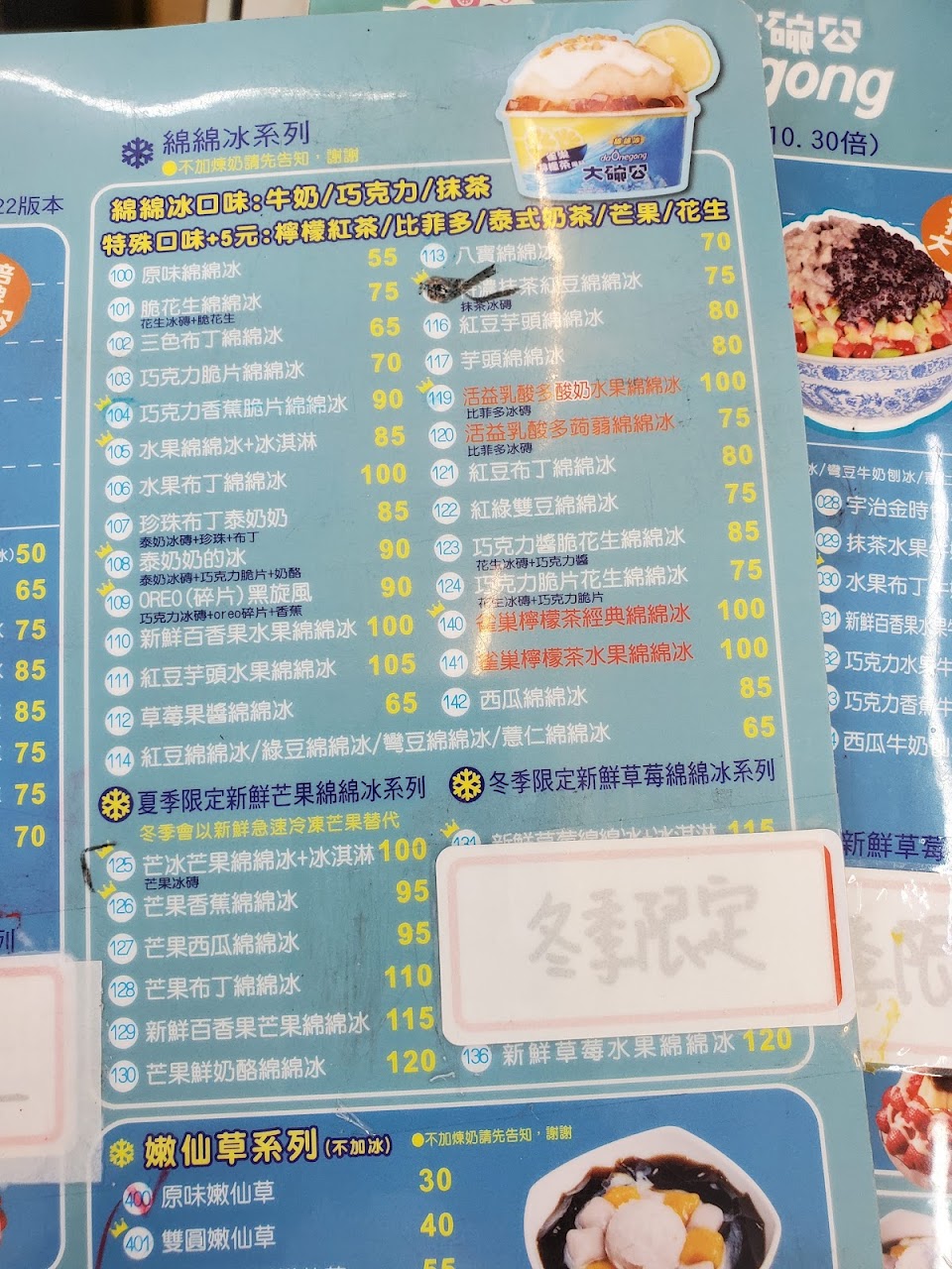 ❐ 芒冰芒果綿綿冰+冰淇淋 $100元