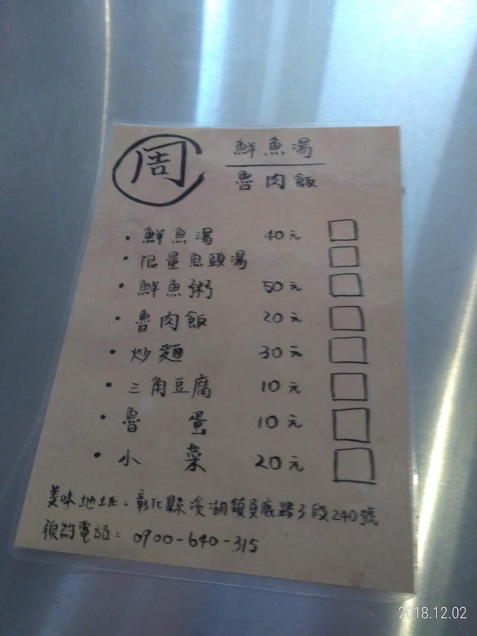 路過好幾次總覺得魚湯就是有腥味不敢嚐試,今天終於進去試試看,叫了魚湯魯肉飯白菜滷,先吃了一口飯喝一口湯熱騰騰的…頭上突然出現一個驚嘆號(怎麼那麼好吃,沒腥味多了鮮甜.、魯肉飯的肉是與飯結合)就是能夠讓去過還想去吃的一家店..每個人消費也都是零錢價…