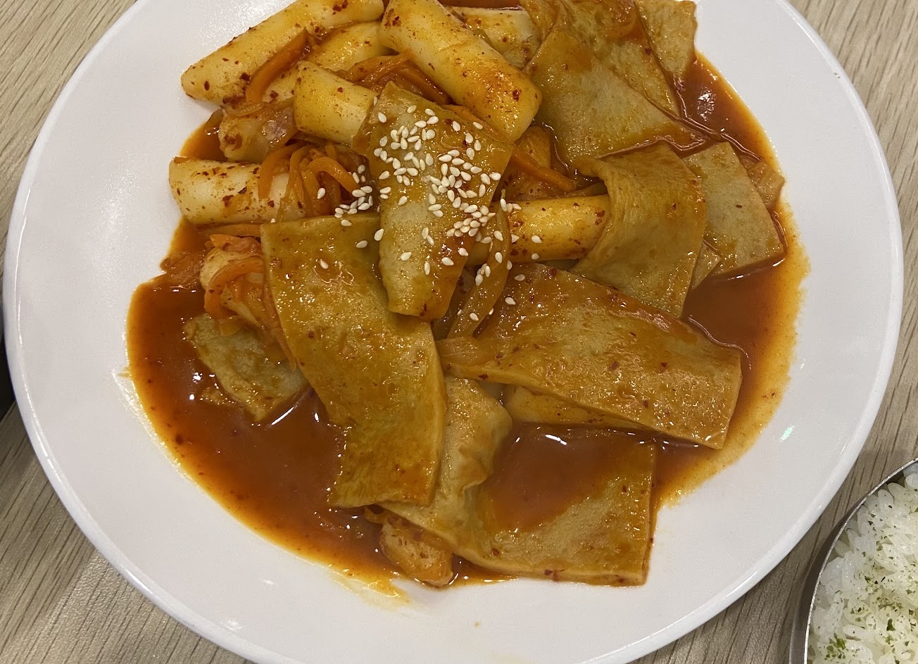 煎餅泡菜口味和年糕加起司也很好吃 辣度適中 年糕也不會太軟太硬