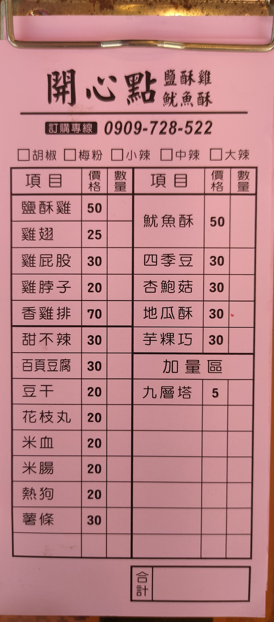 2024最新在地推薦餐廳的菜單_開心點鹽酥雞(原味家香)的菜單、圖片