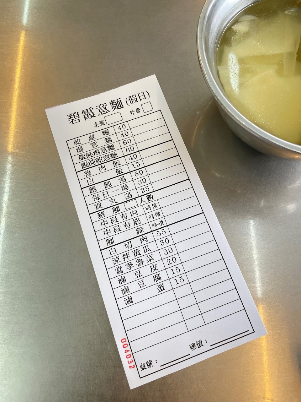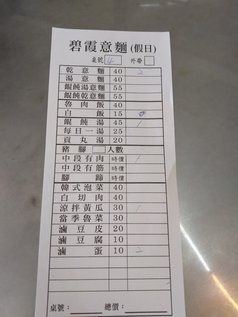 找了位置後 填寫菜單 到櫃檯先結帳~ 他的乾麵很好吃 很Q~~ 滷肉飯跟小菜也都不錯~價位不貴~ 如果只是想簡單吃一餐好吃的是個好選擇~