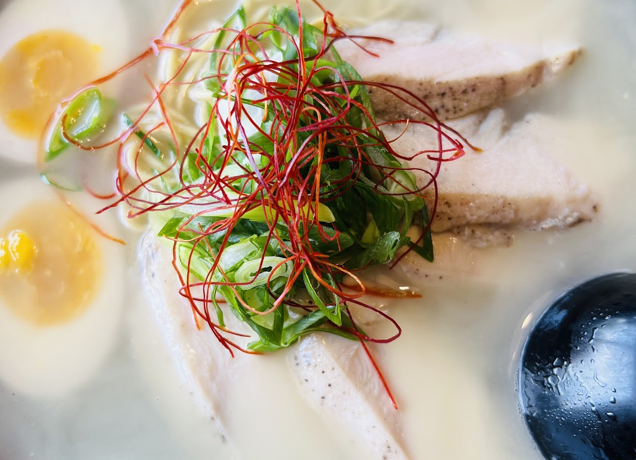 北斗路經田中的半路上發現這家日式拉麵景觀餐廳非常吸睛 !解封後平日中午用餐時間饕客滿座, 生意興隆,等約30分鐘拉麵終於上桌,忍不住嚐一口果然湯鮮味美 麵條Q彈 ,搭配館內日式造景跟黃綠配色的落羽松相襯還有高鐵呼嘯經過……景緻怡人賞心悅目 是餐後拍照的好地方!