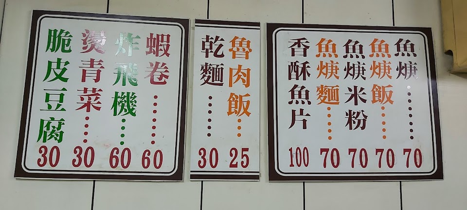 台南口味甜甜的魚羹麵,味道不錯但是稍微小碗且偏貴。炸豆腐皮軟不酥脆。炸飛機是炸花枝。滷肉飯25元偏鹹但便宜。