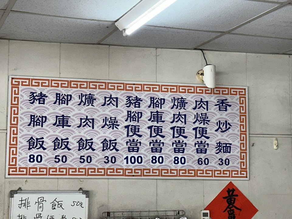 做早午餐的,大約清晨六點就開始營業,做到中午過後,有腿庫三層豬腳中段及豬蹄等不同區塊的肉品可選。也有現煎的荷包蛋,可選全熟或半熟,還有便當配菜,咪受湯免費。算是田中地區最好吃的爌肉豬腳飯之一。