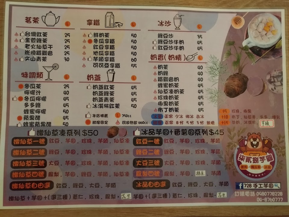 2024最新在地推薦餐廳的菜單_728芋圓飲品-田中專賣店的菜單、圖片