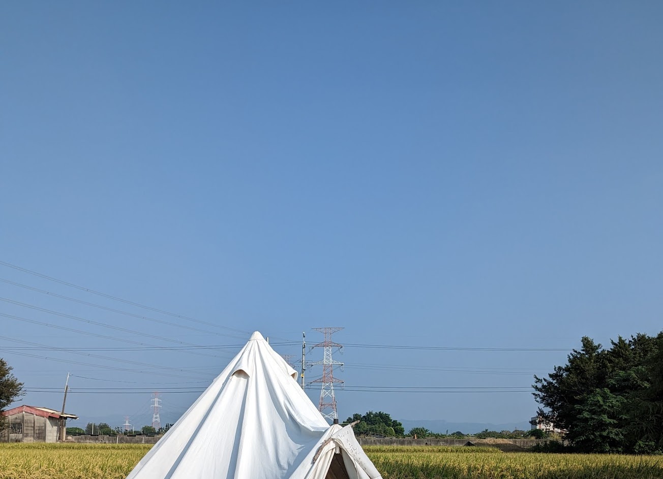 非常愜意自然,綠色草坪稻麥配上簡易風帳篷,很舒適,可以再回來耍廢放空~ 可以自備野餐墊或露營椅,超chill~
