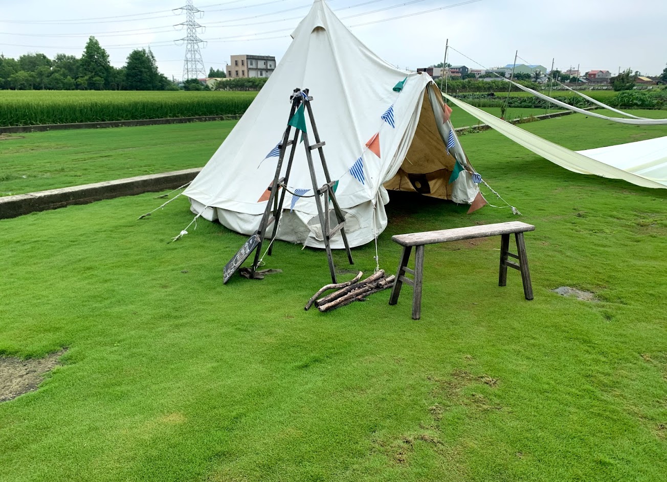 綠油油的稻田加上戶外的帳篷,實在太適合拍照了
