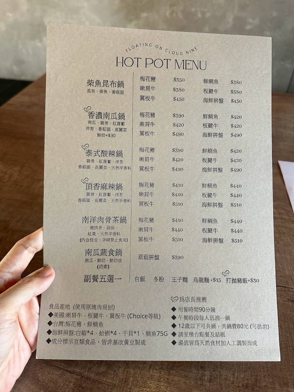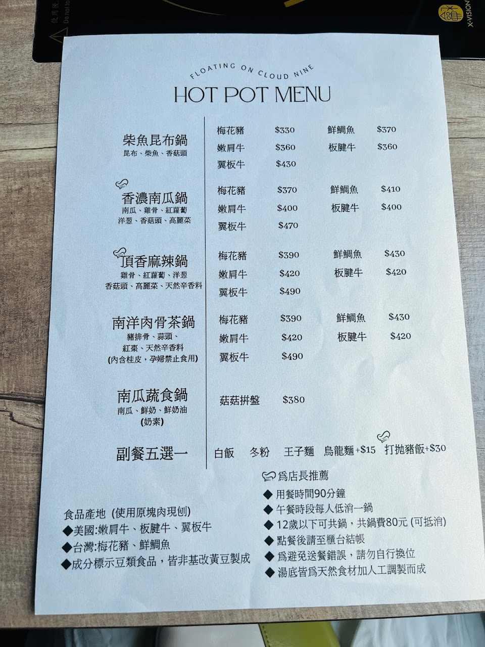 ✳️用餐90分鐘,午餐時段每人低銷一鍋
