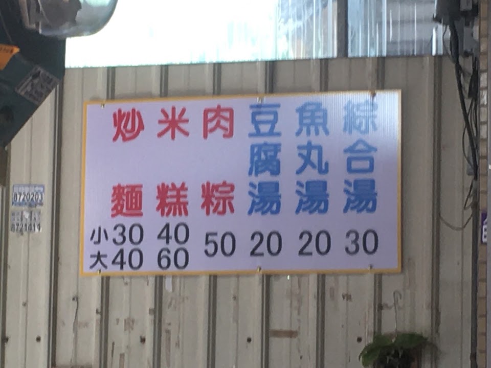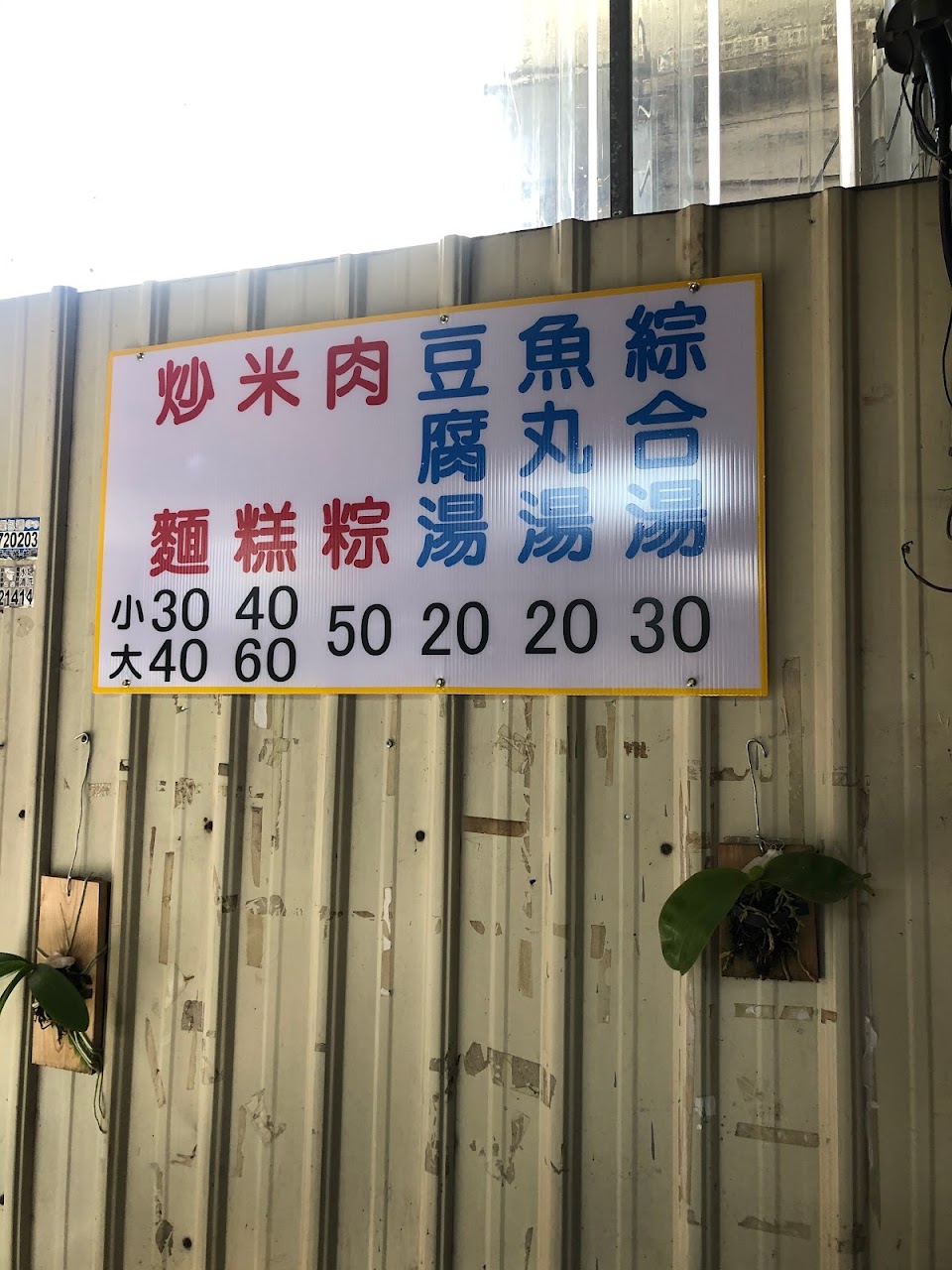 肉粽$50小貴、米糕$40尚可米比較乾一點、炒麵份量少、豆腐湯OK湯、停車用餐環境OK。
