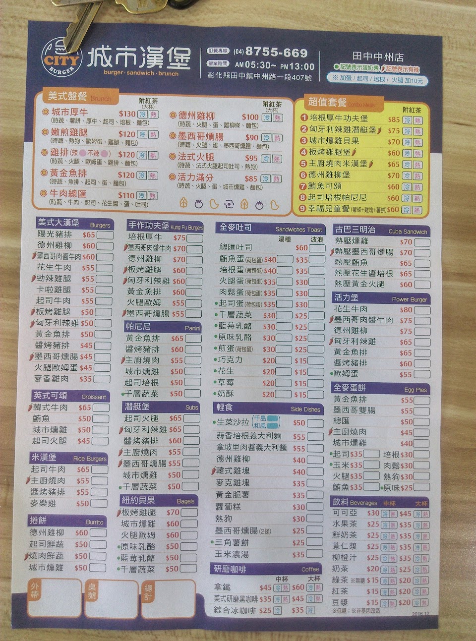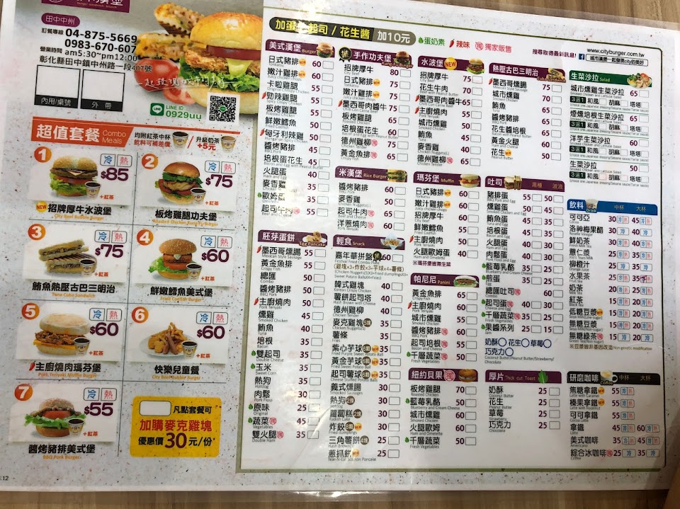 2024最新在地推薦餐廳的菜單_城市漢堡-田中中州店的菜單、圖片
