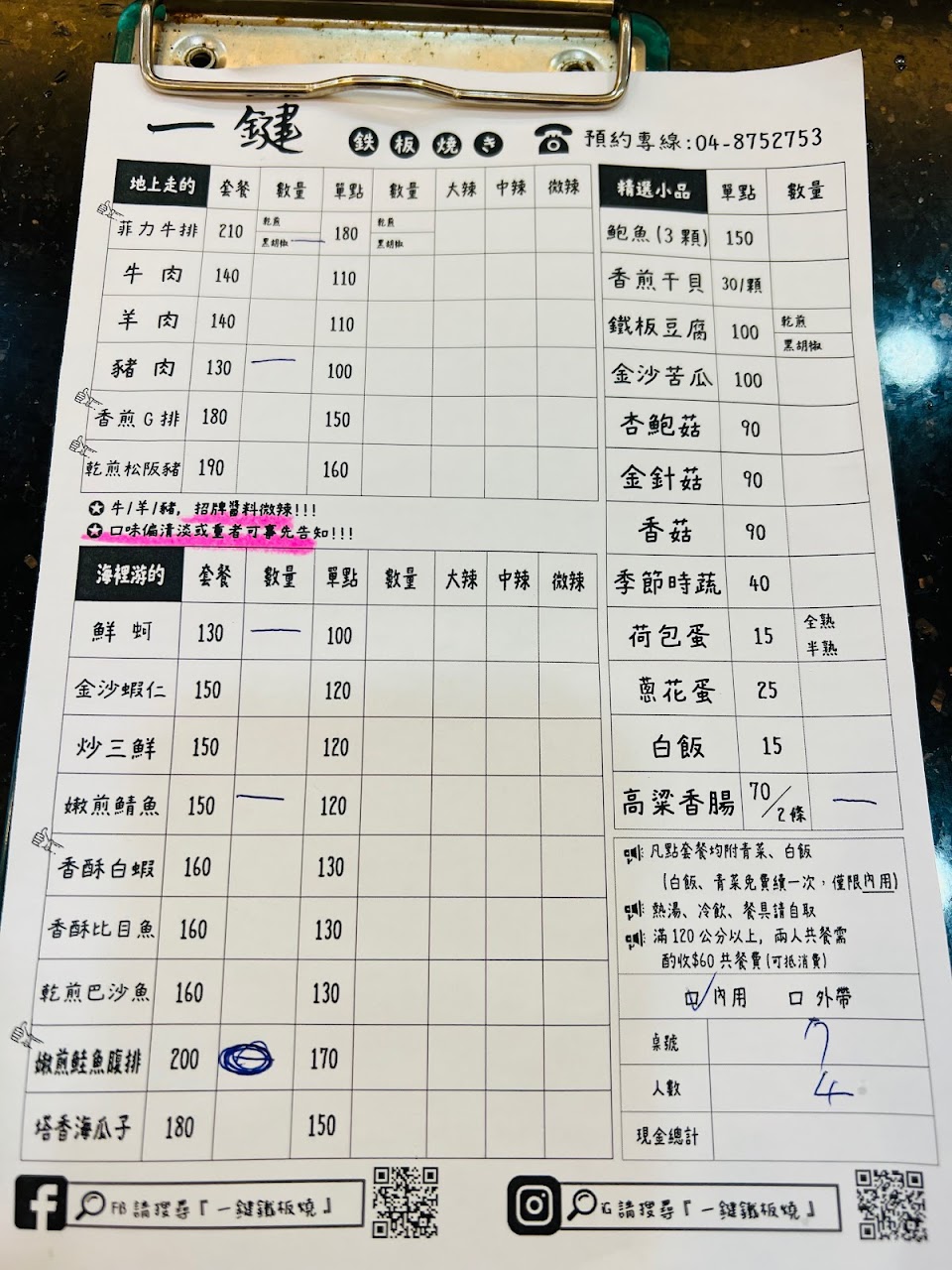 2024最新在地推薦餐廳的菜單_一鍵鐵板燒的菜單、圖片