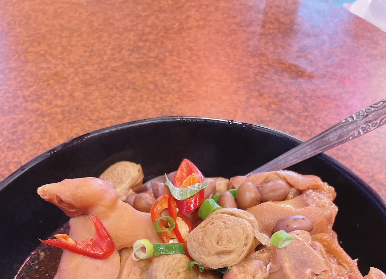 C P值不高菜色沒特色只是家常菜東坡肉沒有入味只是煮得很爛而已我個人口味不習慣 地瓜飯米很硬沒有香氣 這是阿嬤煮的菜媽吃過一次就夠了
