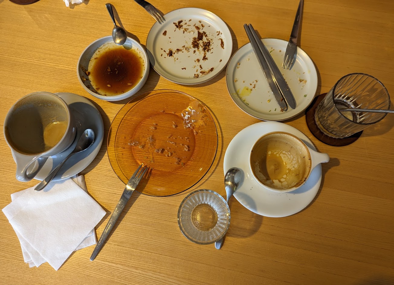 甜點味道普通,份量少又貴,磅蛋糕味道很淡,香橙肉桂可頌的味道有點怪,香橙不太配肉桂味。最美的位子規定要三人才能入座,整間店都是阿姨們聊天的聲音,整體不推薦