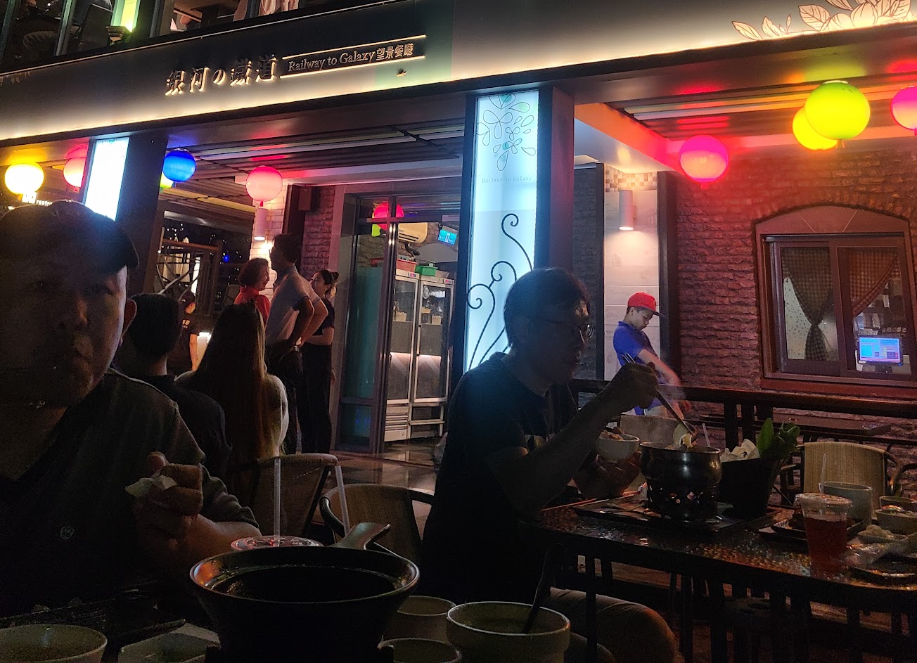 這邊主要是吃氣氛的:偶爾會有高鐵經過、夜景不錯,山上也涼涼的挺舒服。
