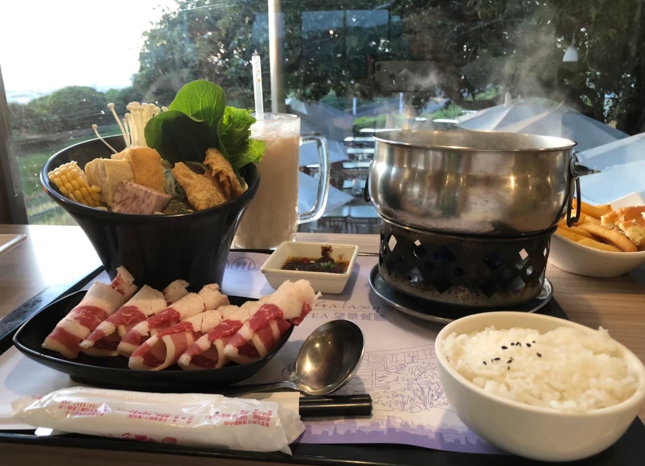 他的營業時間是星期一、星期三至星期五都是下午的五點到晚上12點,假日則是上午10點到晚上12點,低消是每人$150,餐點其實沒有讓我有過多的驚喜感覺一般般,不過它並沒有時間限制,你愛坐多久就坐多久,非常的適合情侶約會看夜景,如果你想吃點熱食,這邊也供應小火鍋,一面用著晚餐一面看著夜景也是一個感情加溫的好方法!