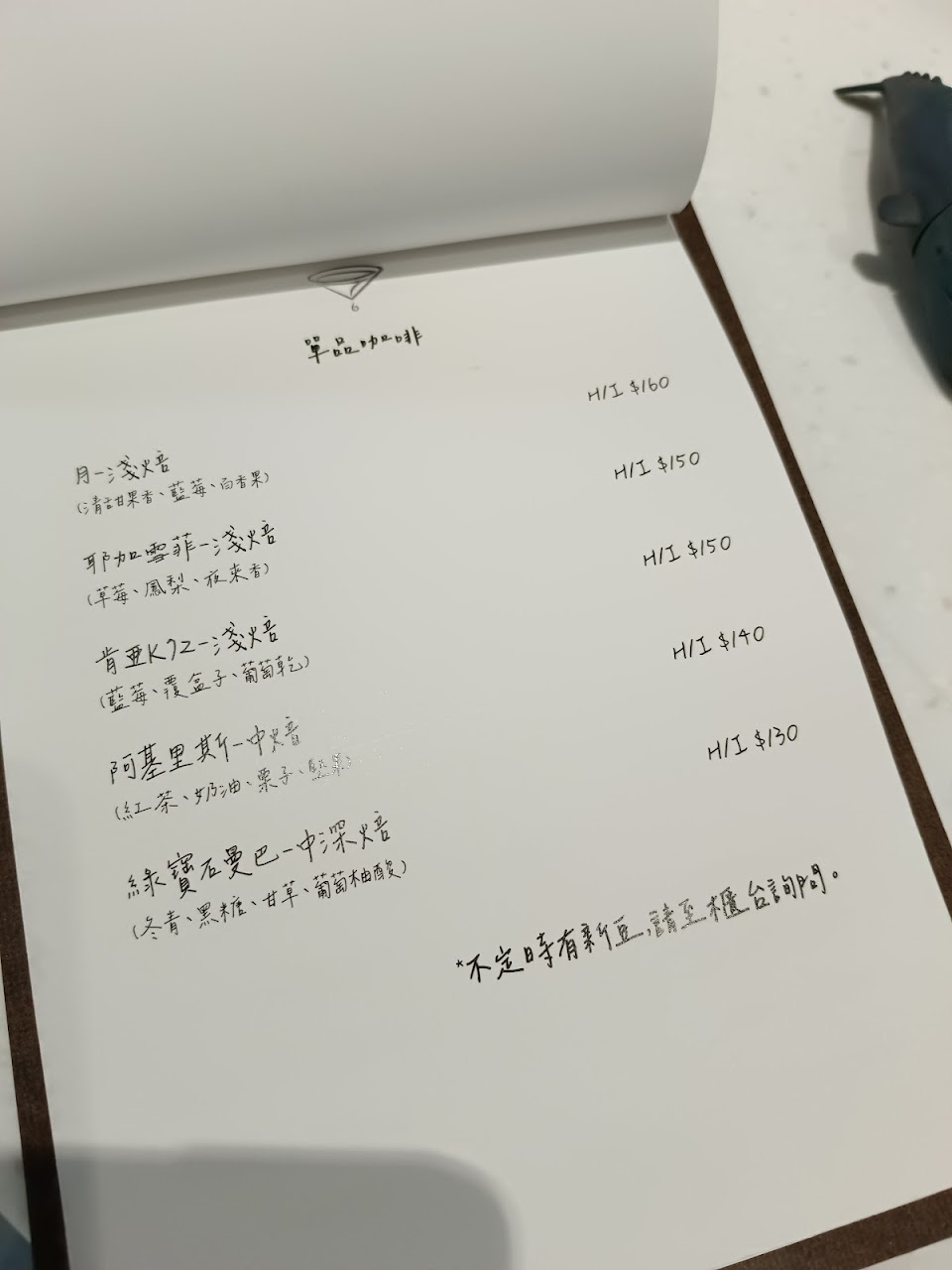 很放鬆的一間咖啡廳, 色系呈現乾淨的灰白色系、 擺設木質桌椅以及綠植做點綴 店貓超級可愛~他叫 必魯(啤酒的台語) 版娘很貼心,看我一直在看必魯,直接把我跟他安排同一桌XD 版娘說貓咪醒著時可以稍微摸摸他下巴和頭部,不要摸他身體~ _ 當日甜點會寫在櫃台前面的小黑板上 選了抹茶捲跟西西里咖啡!