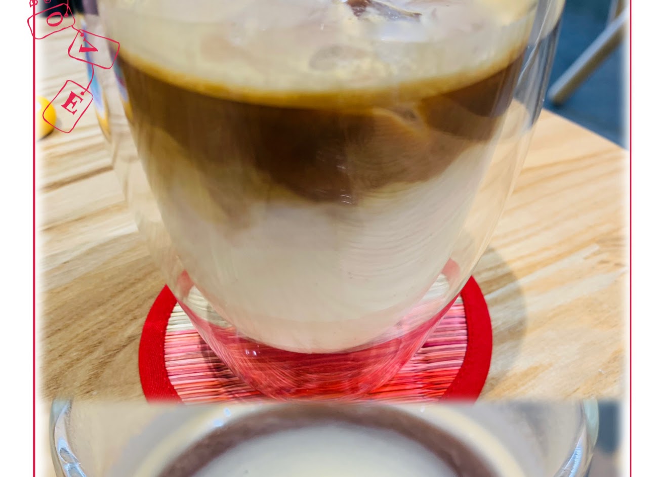 今天發現新大陸, 哇!原來社頭有好吃的「甜點咖啡店」,真是太棒了! 冰拿鐵、熱美式都好喝?, 美式咖啡是女性喜歡的果酸調。 麵茶千層口味很特別,好吃? 花生麻糬鬆餅也好吃?