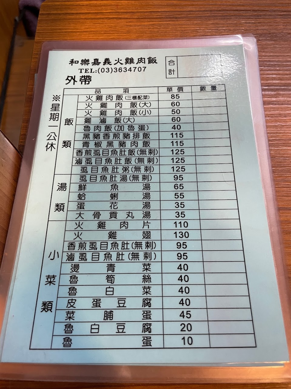 2024最新在地推薦餐廳的菜單_和樂嘉義火雞肉飯的菜單、圖片