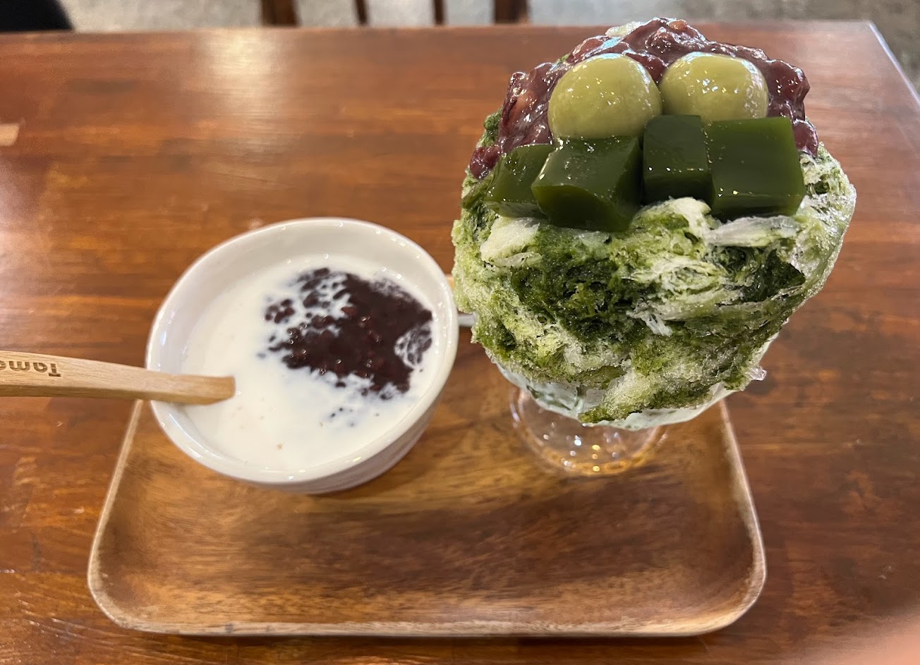 扣一顆星是 還有一碗豪華宇治金時 點餐的時候抹茶冰淇淋沒了 詢問要芒果或牛奶的 我們選了牛奶的 後來有位員工又說紅豆也沒了 改換抹茶凍 要吃打開才發現單子打成芒果冰淇淋 也給芒果的 但是跟抹茶超級不搭 傻眼?