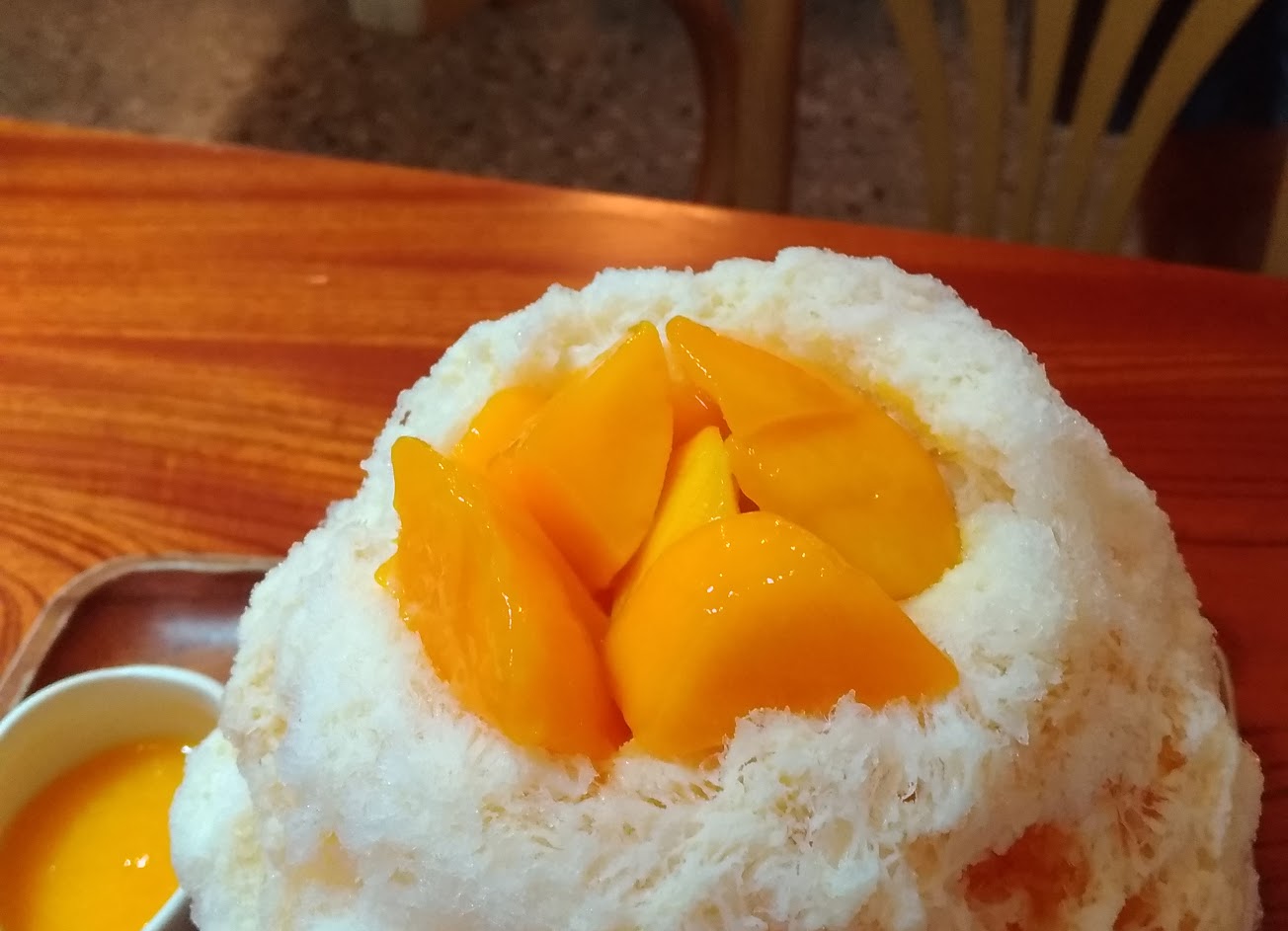新鮮芒果,滿滿的芒果,真材實料,好吃;宇治抹茶口味,對我而言有那麼一點點苦,但搭配的紅豆卻非常好吃~