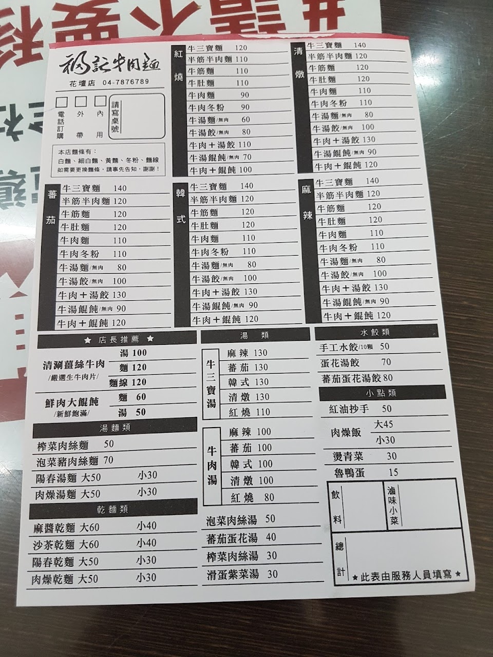 2024最新在地推薦餐廳的菜單_福記牛肉麵的菜單、圖片