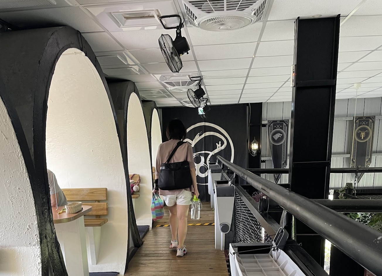 很適合帶小朋友去光顧,餐點也好吃,一家人一個水管包廂,下雨天店員還會送上雨傘讓客人能穿越中間無遮蔽物的地方,很棒的餐廳!