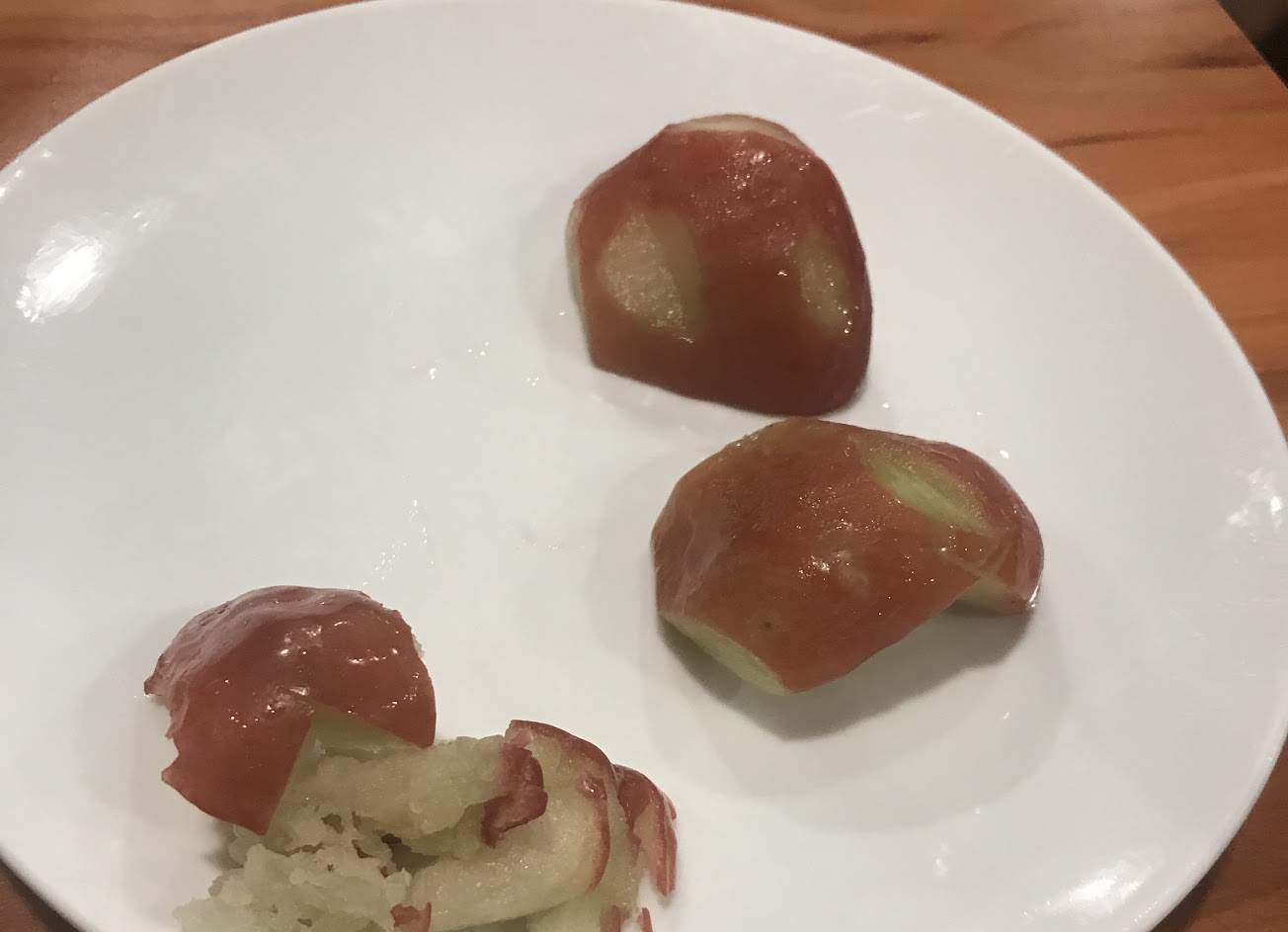 每道菜都吃光光,唯獨鮭魚下巴(應該沒認錯魚種)沒能將就吞下肚,覺得糟蹋食物很抱歉,但鮭魚本身風味特殊,用蒸的方式把腥味昇華到最高,一口咬下很催吐……。