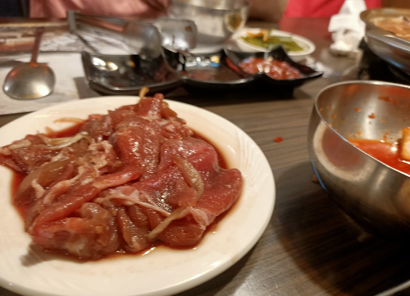 韓式料理餐廳,可以單點或選擇吃到飽(限時100分鐘),小菜及飲料皆可無限取用。此次依舊是單點雪濃牛肉鍋,以及一份單人烤肉套餐,覺得這組合CP值最高。