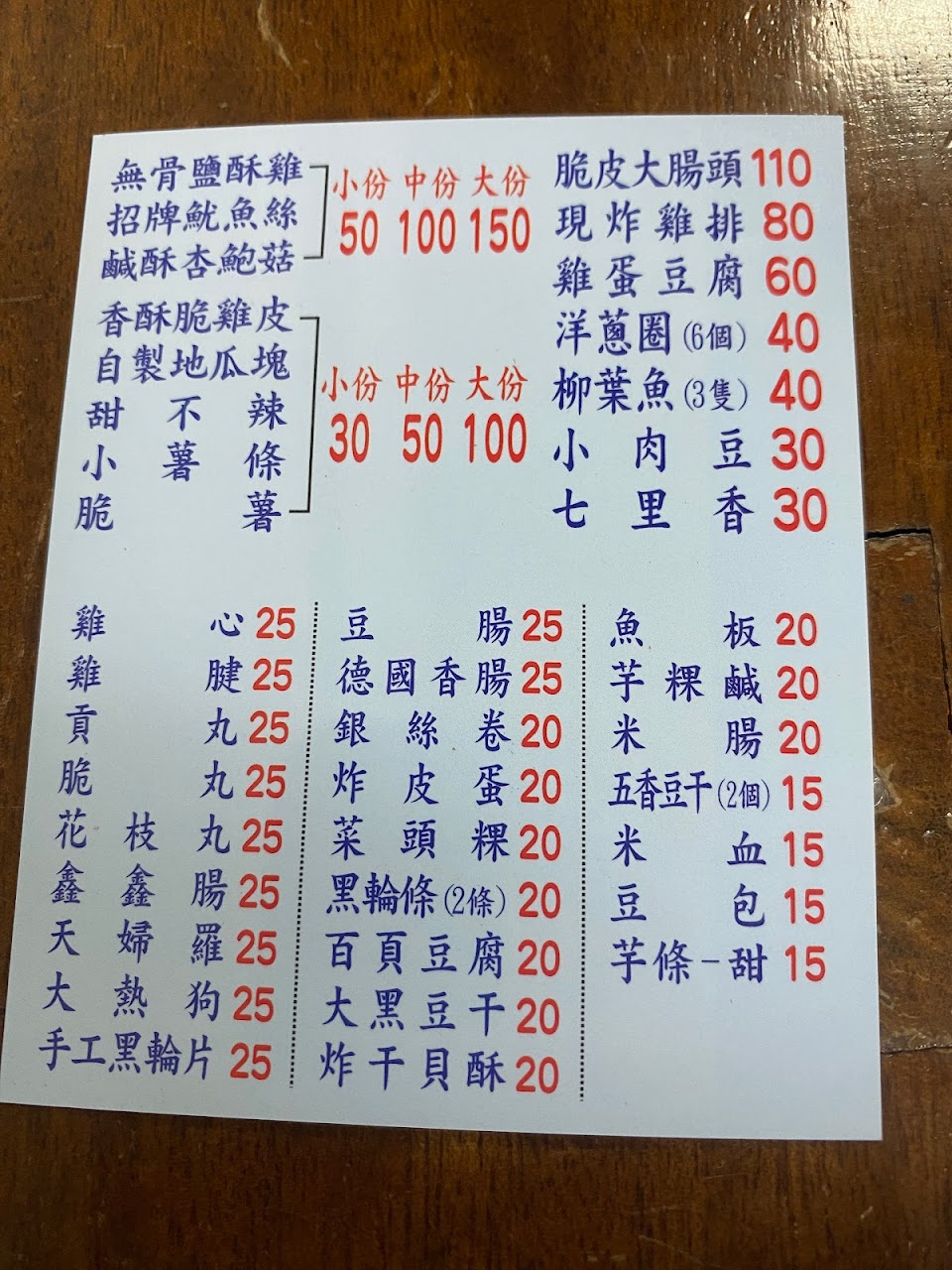 平價,鹹酥雞和魷魚都有小份的,每次想買到200拿盒子都買不滿XD