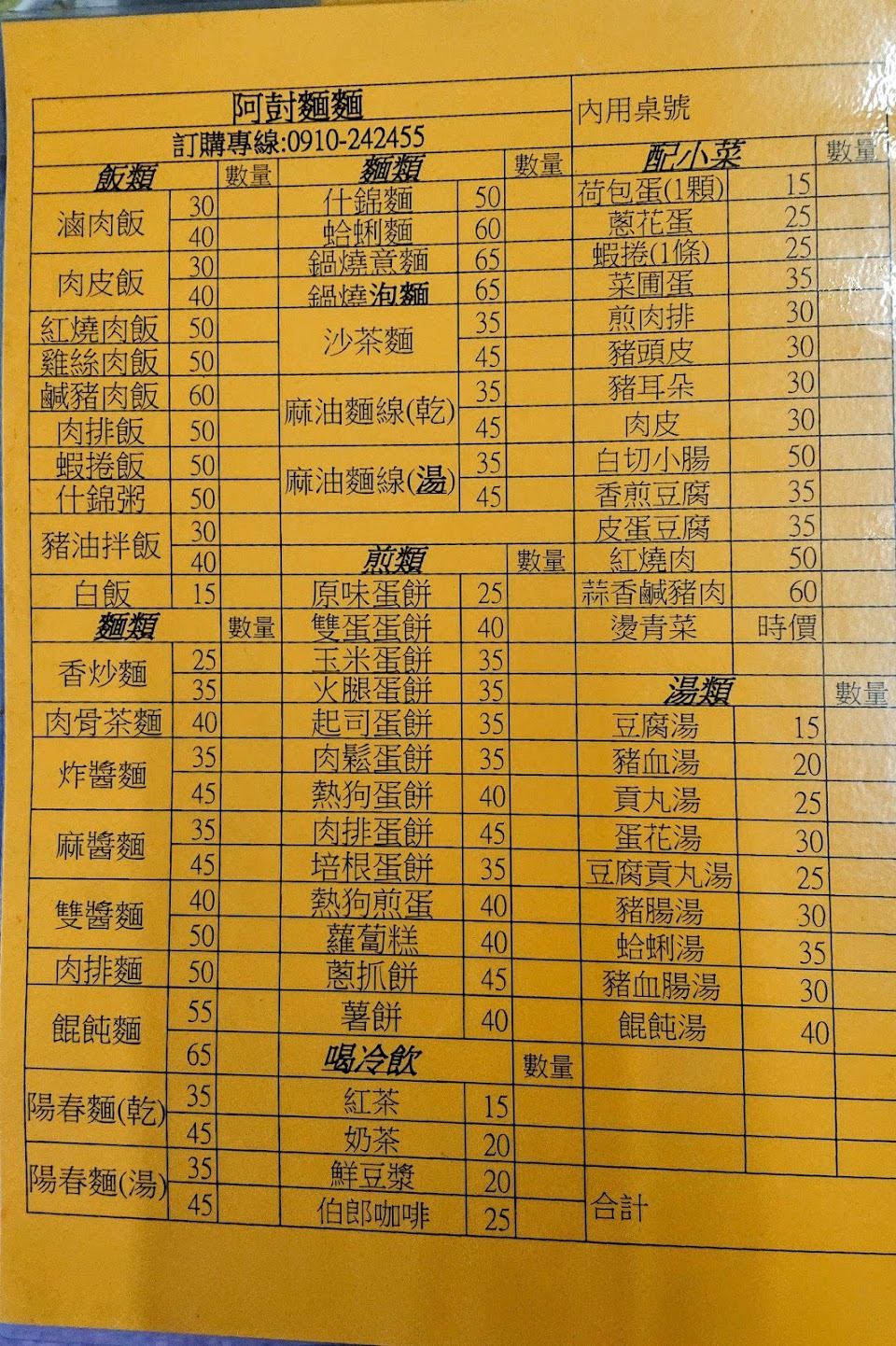 2024最新在地推薦餐廳的菜單_阿尌麵麵的菜單、圖片