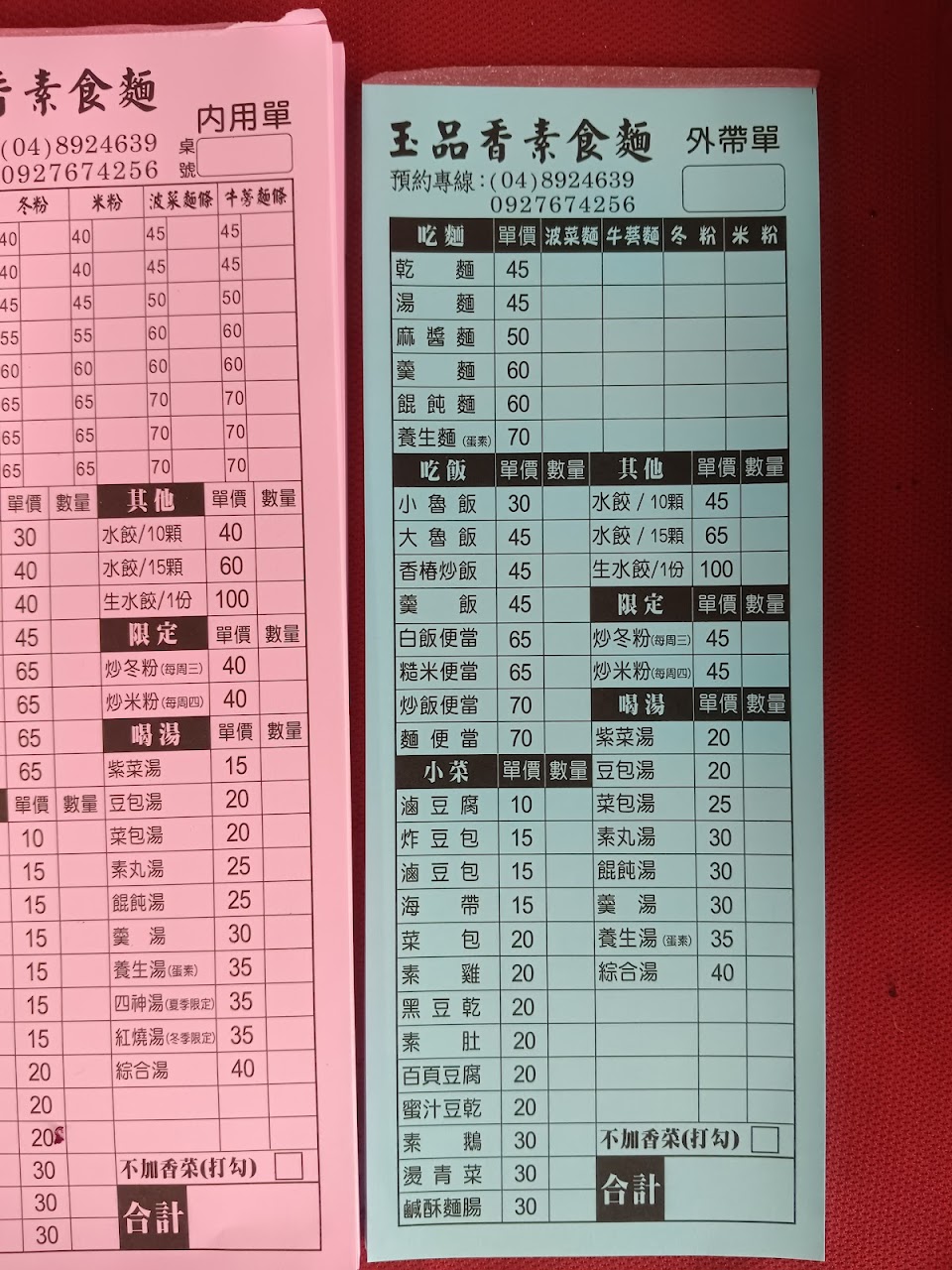 2024最新在地推薦餐廳的菜單_玉品香素食的菜單、圖片