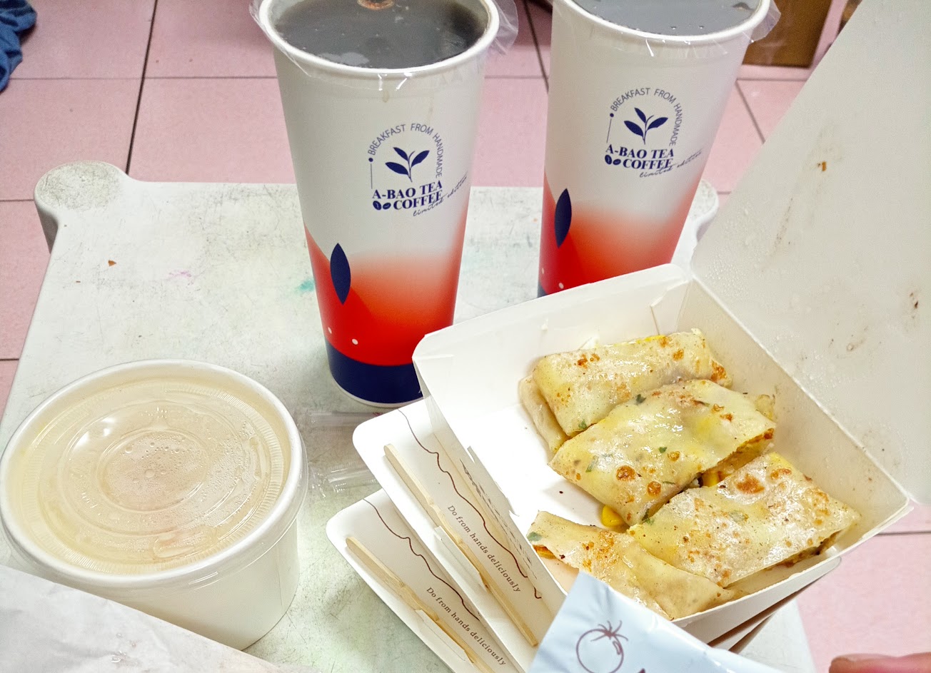 今天點早4的炒麵+蛋+豆漿,炒麵味道太淡,豆漿也太淡,主要是外帶袋子裡面沒主動附筷子吸管,打開有點傻眼,下次再試試別的餐點跟飲料,看看是否有改善