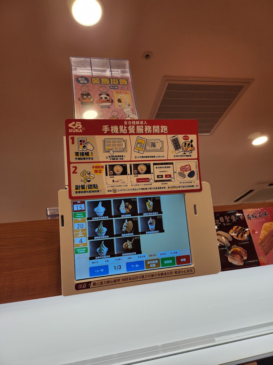 自從桃園有了別的迴轉壽司選擇後,好久沒來,今天本來要吃嗑肉石鍋要等2小時太久作罷,想到藏壽司在旁邊,果然不用等又給了他機會,結果還是失望,先說系統好了1.推薦用手機點餐結果,桌機一直當機要人工重開…總共三次,都想放棄手機點餐了 2.送餐速度太慢,不知道是不是與手機點單更新太慢有關3.手機點餐有限制點餐數量上限,還好店內客人不多,不然用餐時間只有一小時他若趕我時間,我會翻臉。最後三顆星是給服務人員的,小姐姐們服務態度都很好很熱心,餐點與系統都是公司的事,感謝您們的服務
