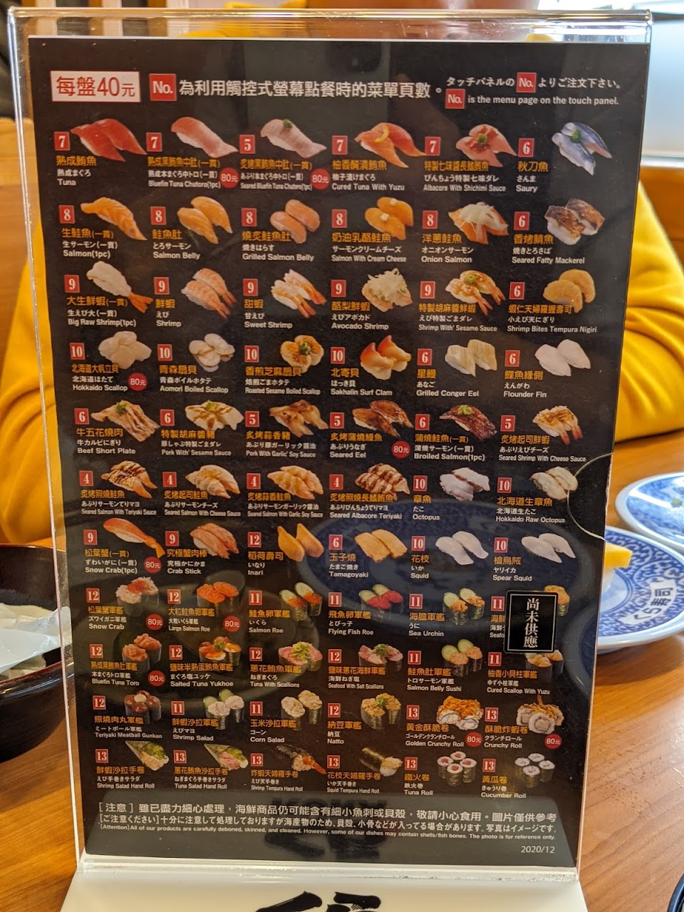 第一次吃,原來40元香烤鯖魚壽司是烤好但冰冷的魚肉。若能增加冷盤的標示,應就不會讓人有錯愕感。