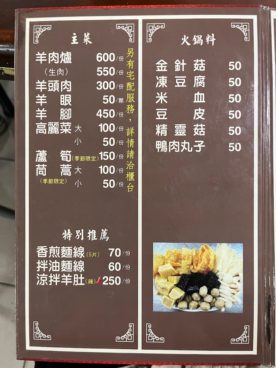 2024最新在地推薦餐廳的菜單_公館羊肉爐的菜單、圖片