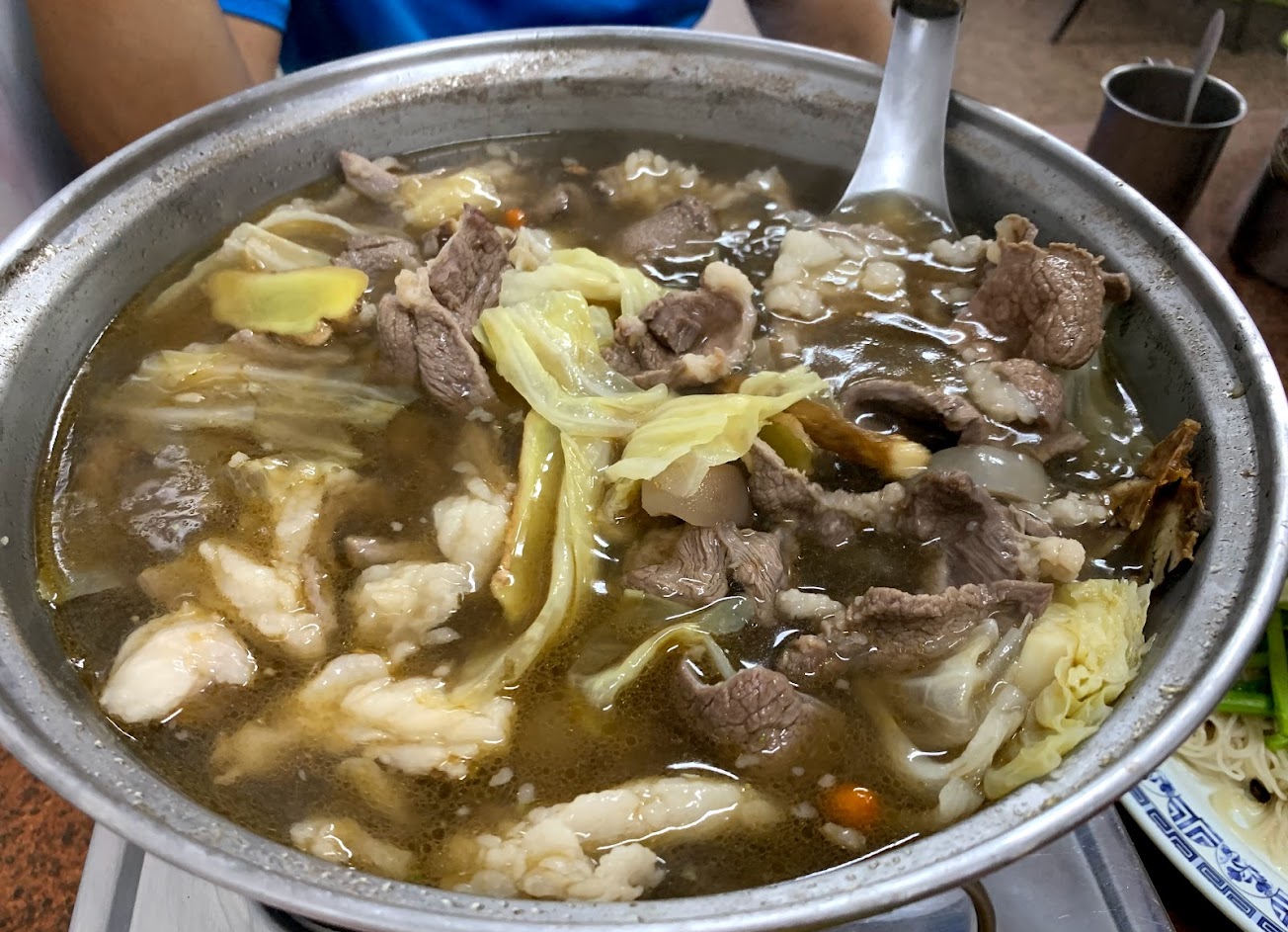 我們吃的是原味鮮湯鍋,點兩種羊肉,一種三層肉羊肉比較有咬勁,另一盤是現切肉片湯開現涮肉質比較嫰,羊肉鮮甜無什麼羊騷味,加入高麗菜和白蘿蔔,湯頭非常好喝,他們還有麵線有麻油和洋油麵線很好吃,也可以點沙茶炒羊肉它比較偏下酒菜。