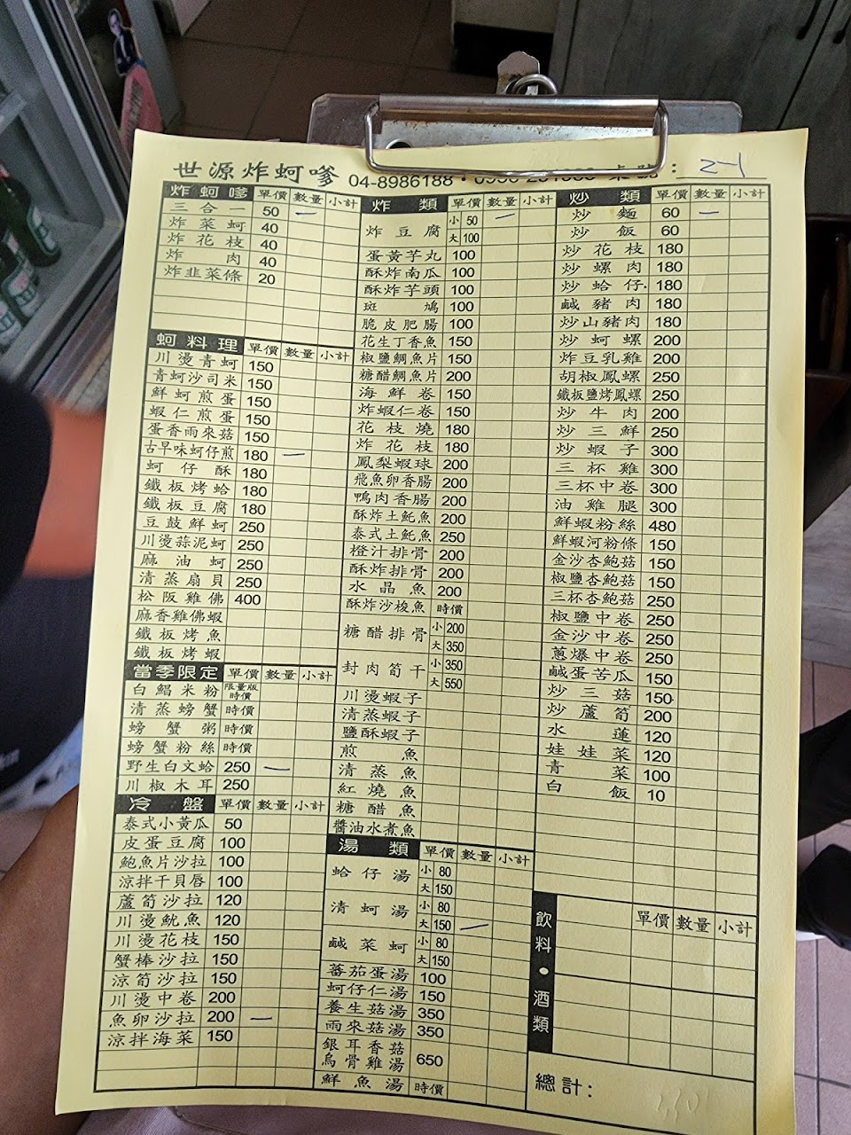 2024最新在地推薦餐廳的菜單_世源炸蚵嗲的菜單、圖片