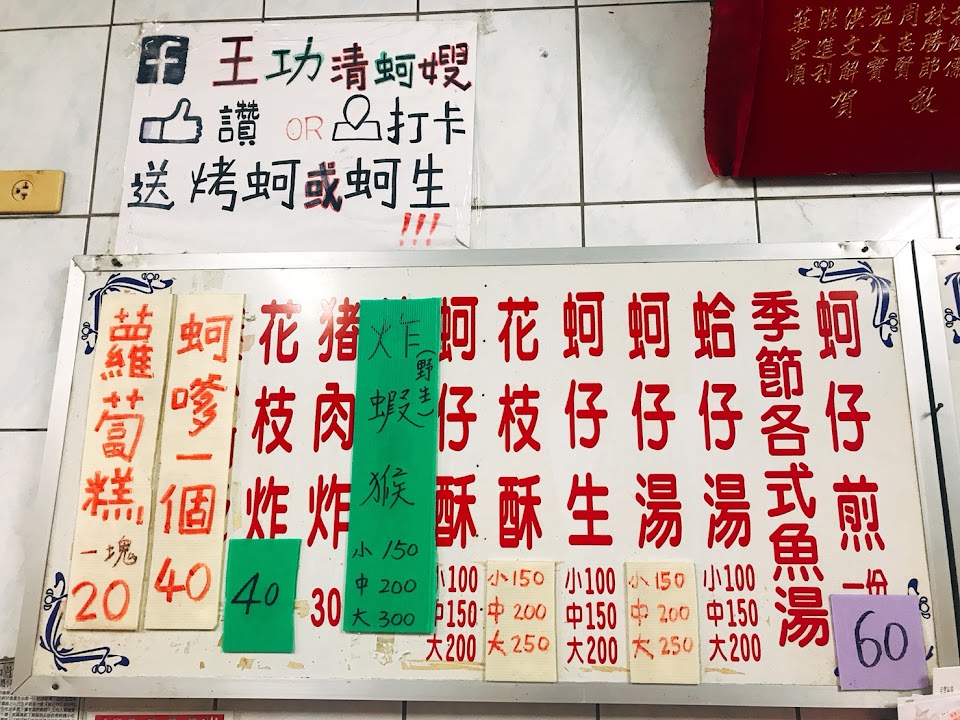 我是因為看到百年老店來的,點了什麼不用特別分享,我只能說炒青菜應該是最基本的吧!我有點高麗菜,這應該是基本中的基本吧!居然有辦法炒到爛爛的完全沒有脆度,炒蛤蜊一盤沒有多少居然還有辦法6顆完全沒開,但是這道炒的還可以,蝦子很新鮮可以點,其他該點也有點,還算可以,蚵仔煎不能說不好吃,是醬料我個人不喜歡,我反而推薦在學校斜對面那家,雖然店面不大,餐點超級好吃