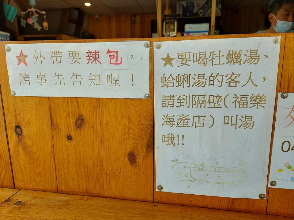 出餐後老闆到門口馬路邊抽煙,雖然有事先把店門拉上,但海邊風大,煙味?還是飄了進來⋯⋯ …