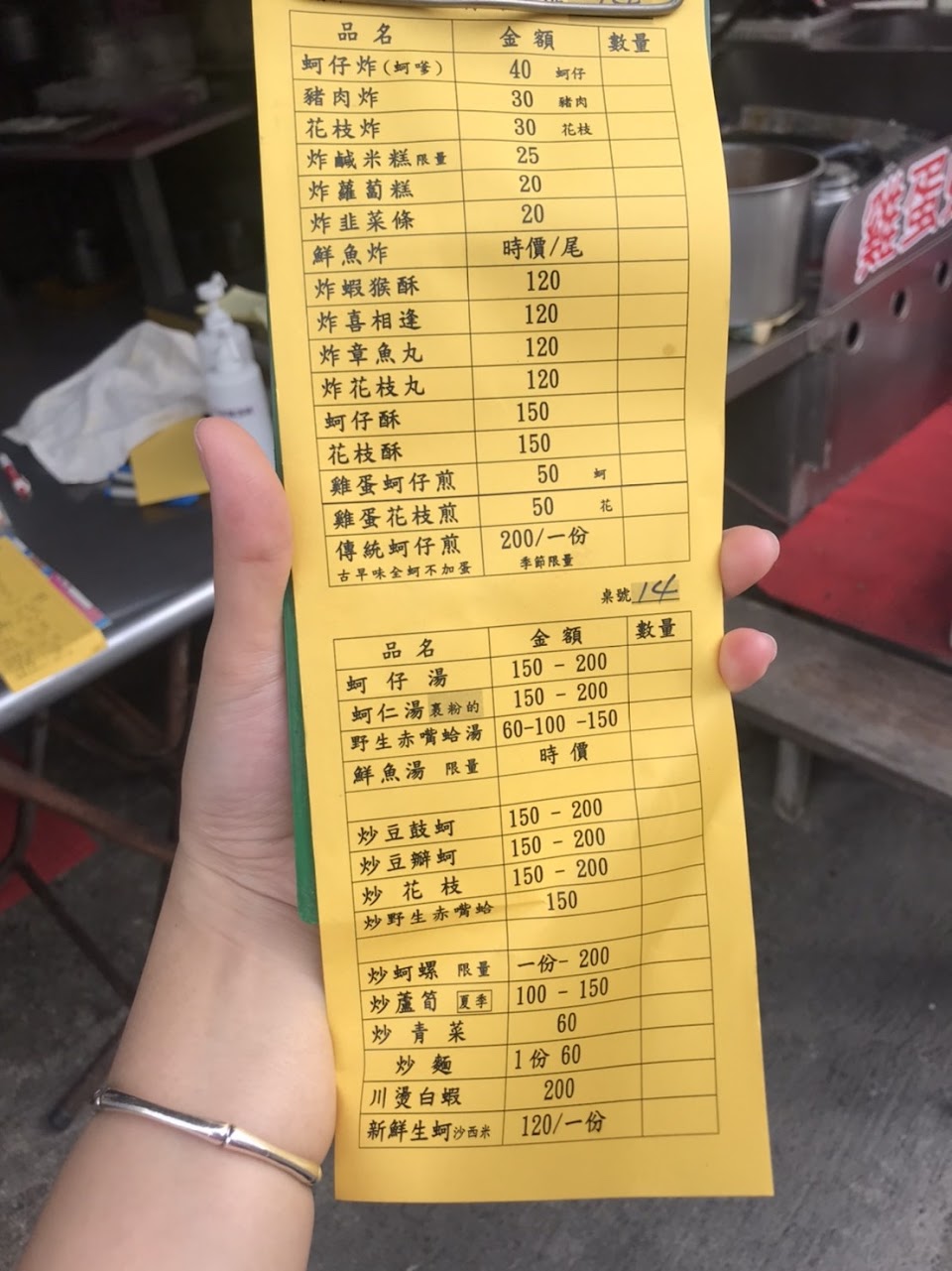 我跟另個朋友從另家店出來時手上就拿著粿在咬,一坐下來,店員就跑來說店裡禁用外食,想說沒有丫,蚵嗲好好的在旁邊沒打開吃丫,才反應過來正在咬的粿也是外食,ok ok立刻收起來。