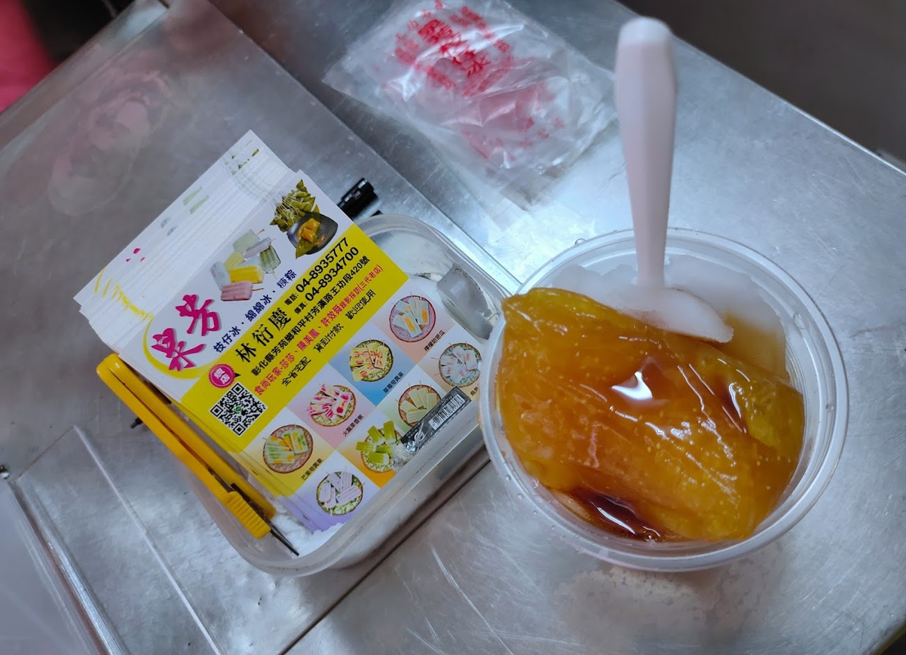 老店古早味的冰,四果冰是四種蜜餞,吃起來酸酸甜甜配著冰,真是回到小時候感覺。 還有月見冰,一顆蛋黃放在紅豆中間,攪拌後混著冰吃,真是好好吃。 很多電視節目介紹過,在偏遠鄉鎮之中,有這美食點心冰店,是又驚又喜。